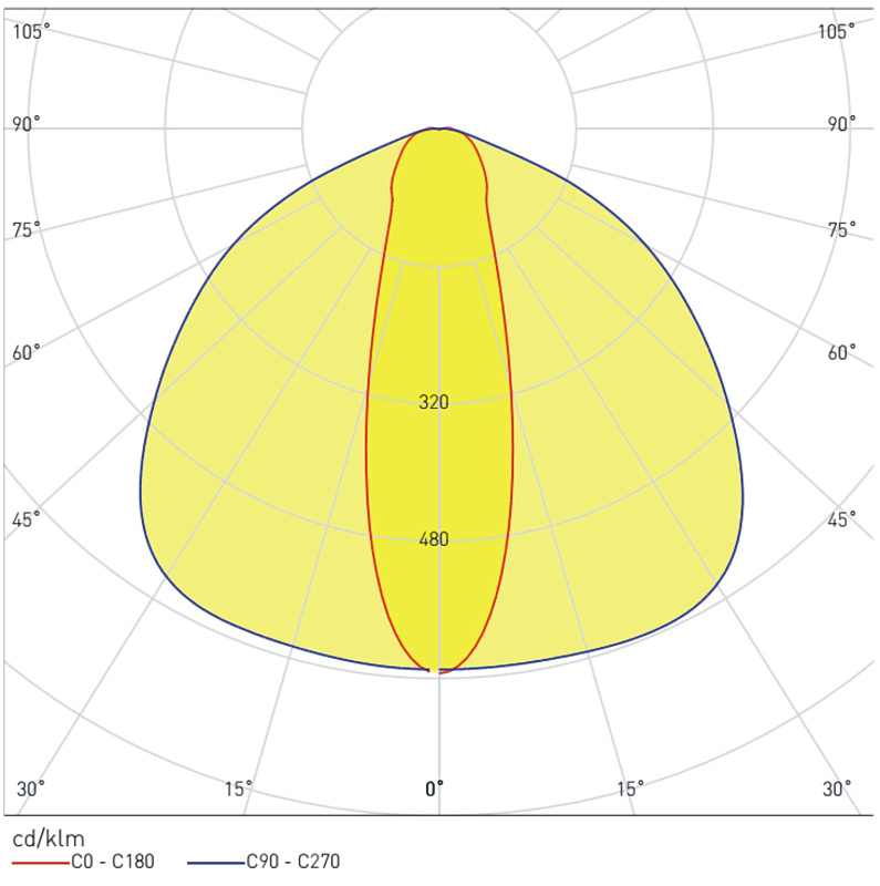Универсальный светильник с углом раскрытия 32°х115°. Специально разработанный для освещения складских проходов. Оптическая система светильника равномерно растягивает световое пятно вдоль складских стеллажей, и в отличие от стандартных фокусирующих светильников, дает свет, как на верхние ярусы, так и на нижние, сводя к минимуму слепящий эффект.